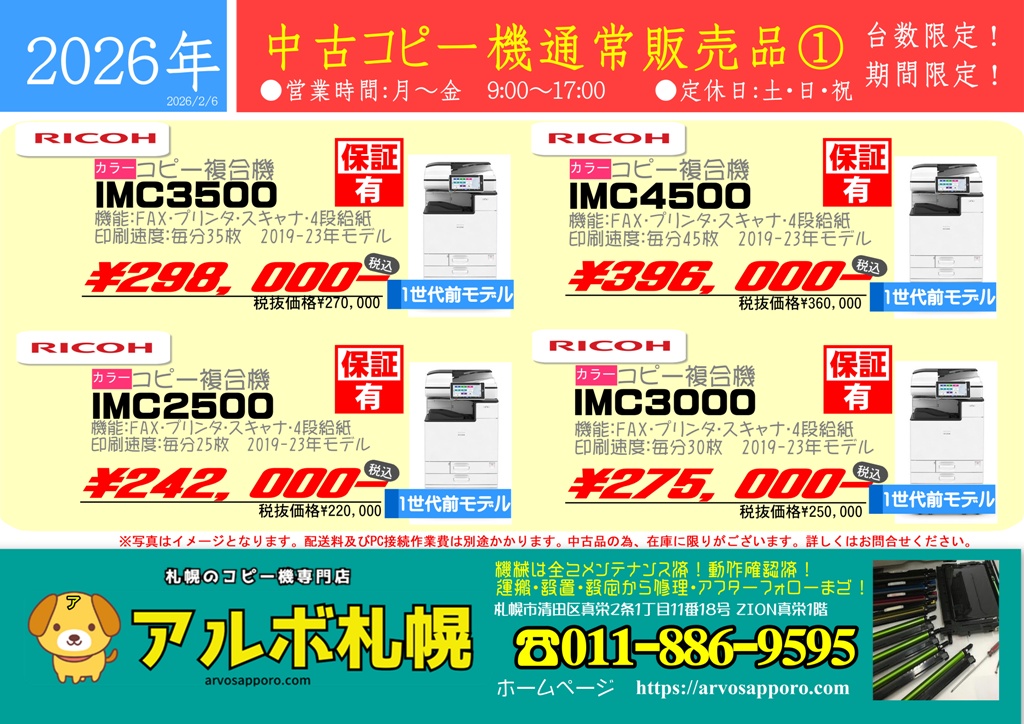 【販売情報】2026年中古コピー機通常販売品①