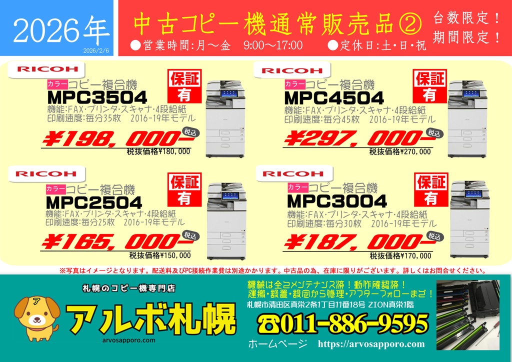 【販売情報】2026年中古コピー機通常販売品②
